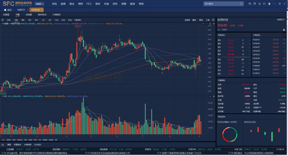 9月5日,拓荆科技(688072.SH)高开后维持震荡,截至收盘涨1.72%报354元。公司自8月29日发布中报以来,获多家机构评级覆盖,区间累计涨幅超9%。