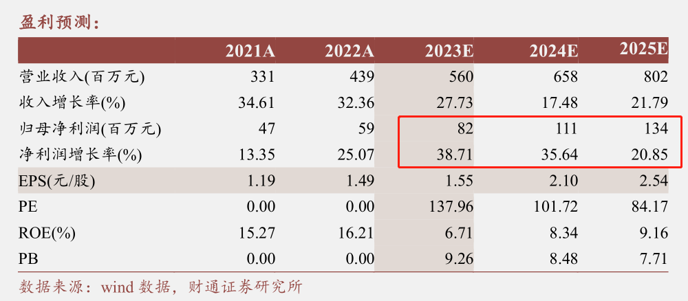 财通证券指出,综合考虑国内半导体产业发展状况,公司核心技术目前的研发进度,预计公司2023-2025年营收为5.60/6.58/8.02亿元,归母净利润分别为0.82/1.11/1.34亿元。
