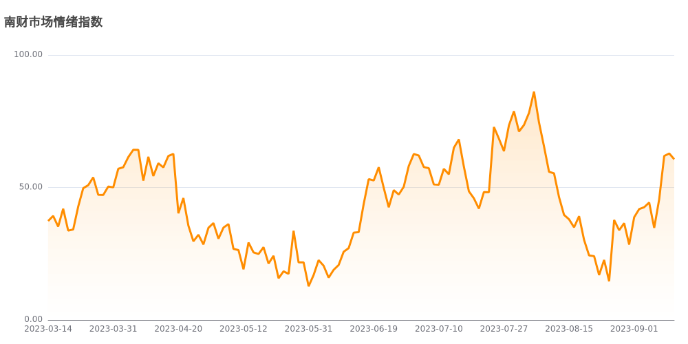 今日南财市场情绪指数为60.6,较前一交易日62.8下跌,市场投资热度降低。