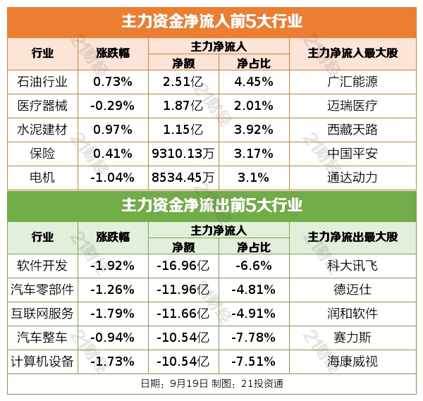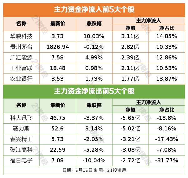 9月19日,大盘全天震荡分化,沪指窄幅震荡相对偏强,深成指、创业板指震荡调整。截至收盘,沪指跌0.03%,深成指跌0.73%,创业板指跌0.88%。板块方面,星闪概念、公路铁路运输、ST板块、油气等板块涨幅居前,光刻机、旅游、液冷服务器、BC电池等板块跌幅居前。