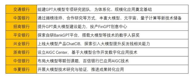 据潮汐榜统计,中国银行、交通银行、招商银行、中信银行、兴业银行、浙商银行等多家银行均在半年报中提及,正在进行大模型相关的布局和研究。