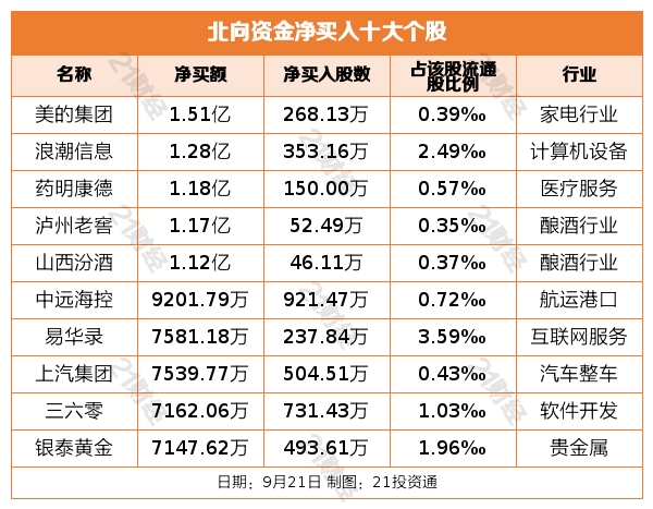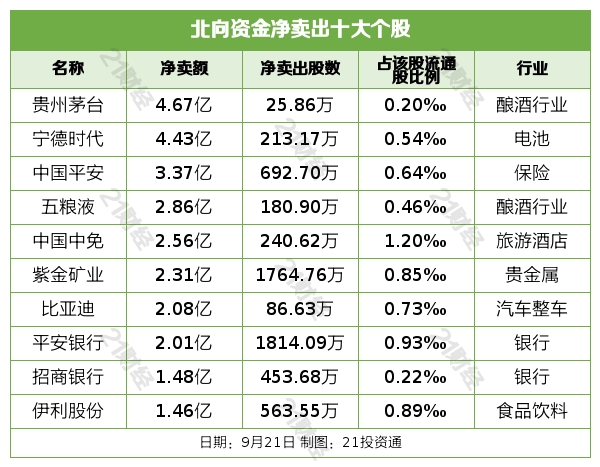 据21投资通智能监测,9月21日,北向资金净卖出43.3亿元,其中沪股通净卖出22.63亿元,深股通净卖出20.67亿元。