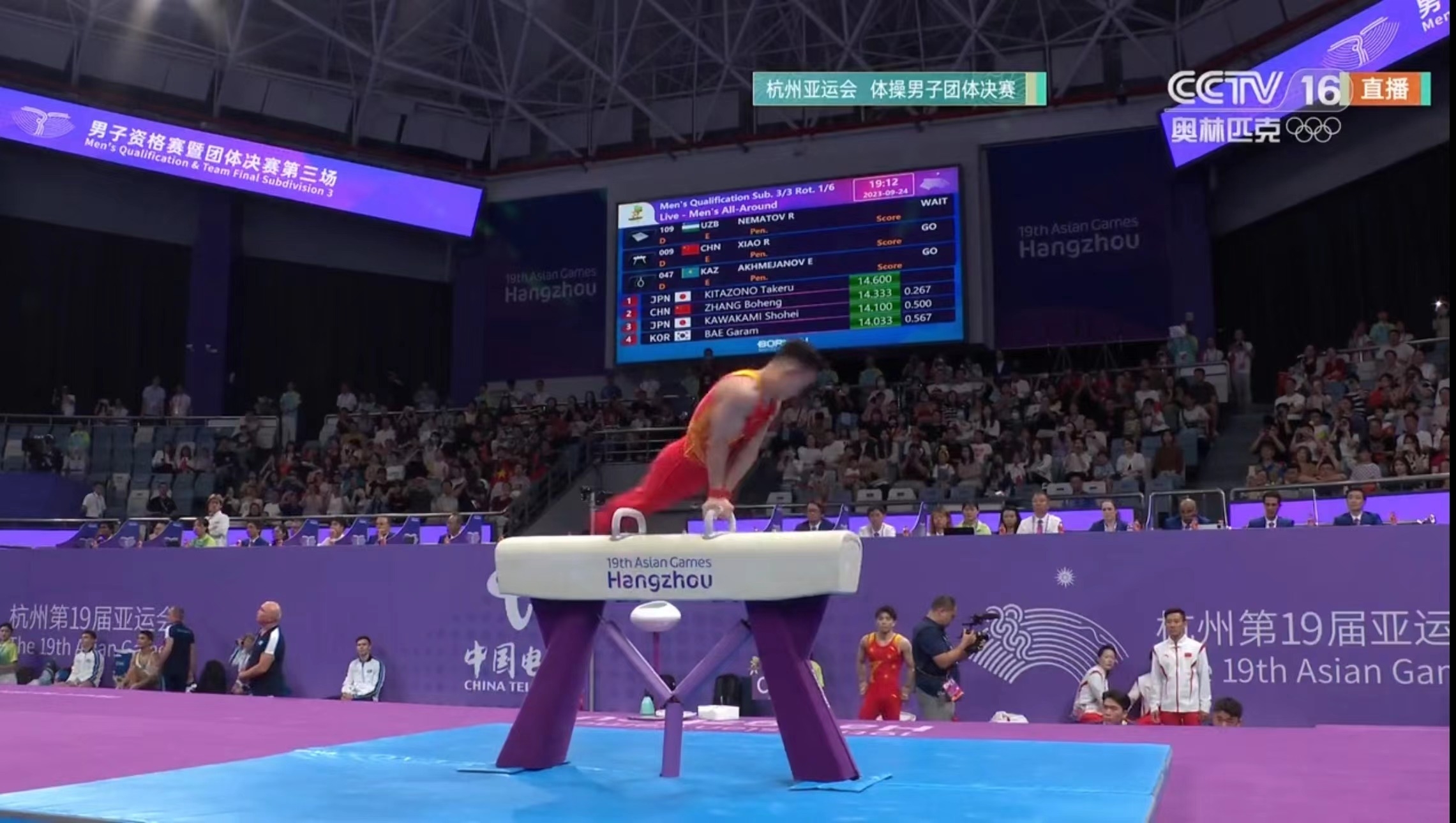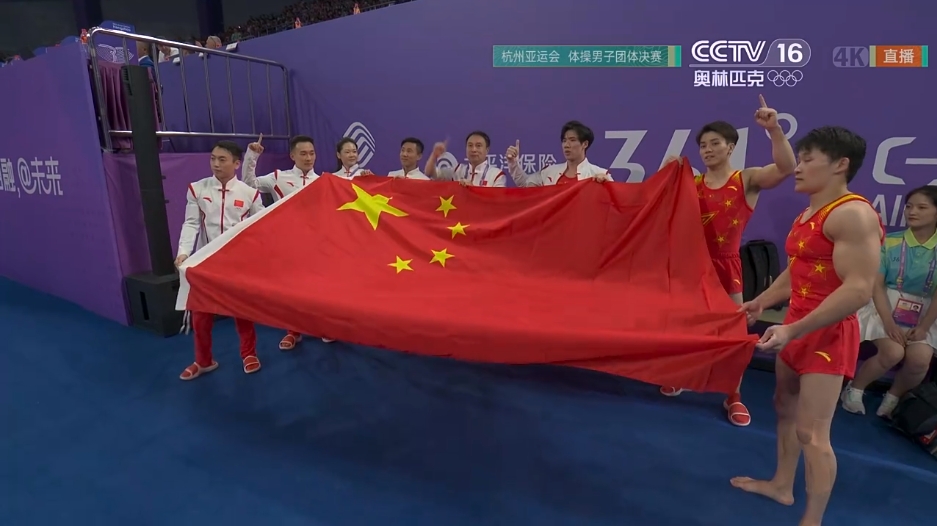 9月24日,杭州第19届亚运会竞技体操男子团体决赛,中国队夺得冠军。