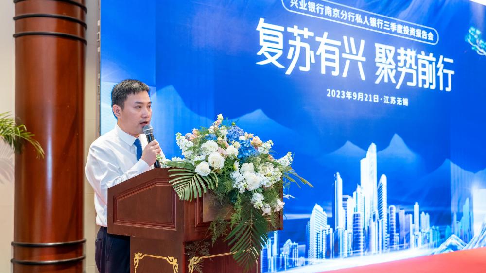 2023年9月21日,兴业银行南京分行私人银行三季度投资报告会在无锡举行。此次活动以“复苏有兴,聚势前行”为主题,探讨在日益复杂多变的宏观政策下,高净值客户财富的保障与传承,交流了权益市场复苏与转折的机会。此次活动邀请到上海证券研究所所长花小伟、睿郡资产合伙人薛大威,上市公司特聘税务顾问蒋晓敏莅临现场,与省内近120位高净值客户开展了交流和分享。