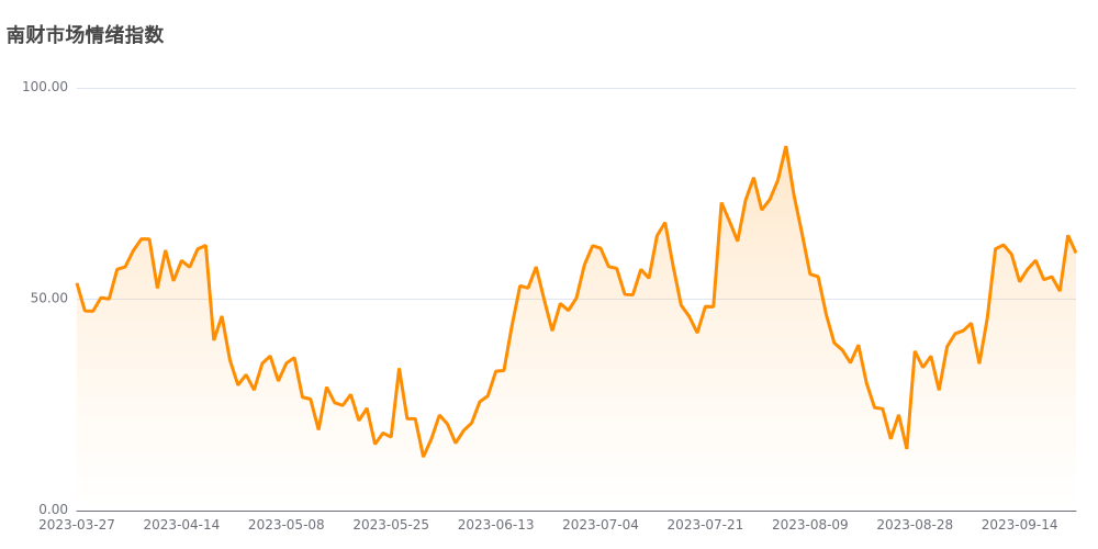 今日南财市场情绪指数为60.9,较前一交易日65.1下跌,市场投资热度降低。