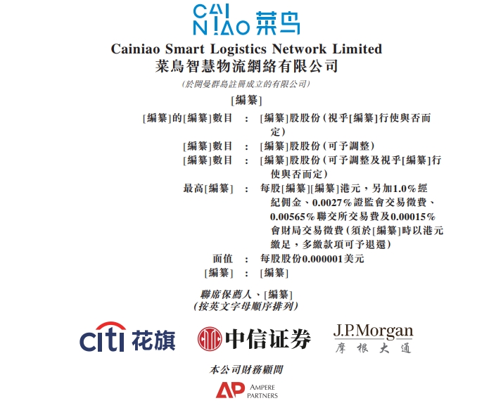 9月26日晚间消息,据港交所文件,菜鸟智慧物流网络有限公司向港交所提交上市申请,联席保荐人为花旗、中信证券、摩根大通。