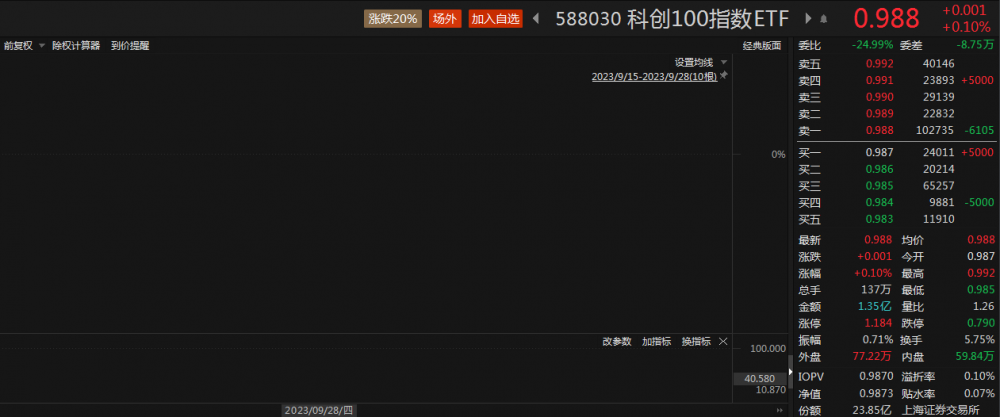 今日(9月28日),三大指数冲高回落,科创100指数(000698)盘中回升,现跌0.04%。