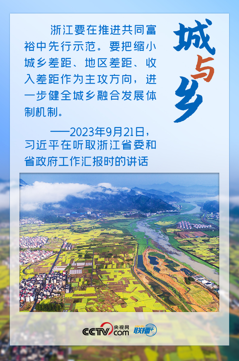 城乡差距问题是制约我国实现共同富裕的显著短板。习近平总书记曾说:“促进共同富裕,最艰巨最繁重的任务仍然在农村。”新时代扎实推动共同富裕,首先要破解城乡发展过程中的不平衡不充分难题,通过乡村振兴战略和建立健全城乡融合发展的体制机制来提高农业农村现代化水平,进而形成工农互促、城乡互补、全面融合、共同繁荣的新型工农城乡关系。浙江是我国城乡协调发展水平较高的地区,近年来在推进城乡融合发展、缩小城乡差距方面进行了大胆探索,中央支持浙江高质量发展建设共同富裕示范区的四项战略定位就包括建设“城乡区域协调发展引领区”,此次总书记再次提出明确要求,足见他对浙江在推进共同富裕中先行示范寄予厚望。
