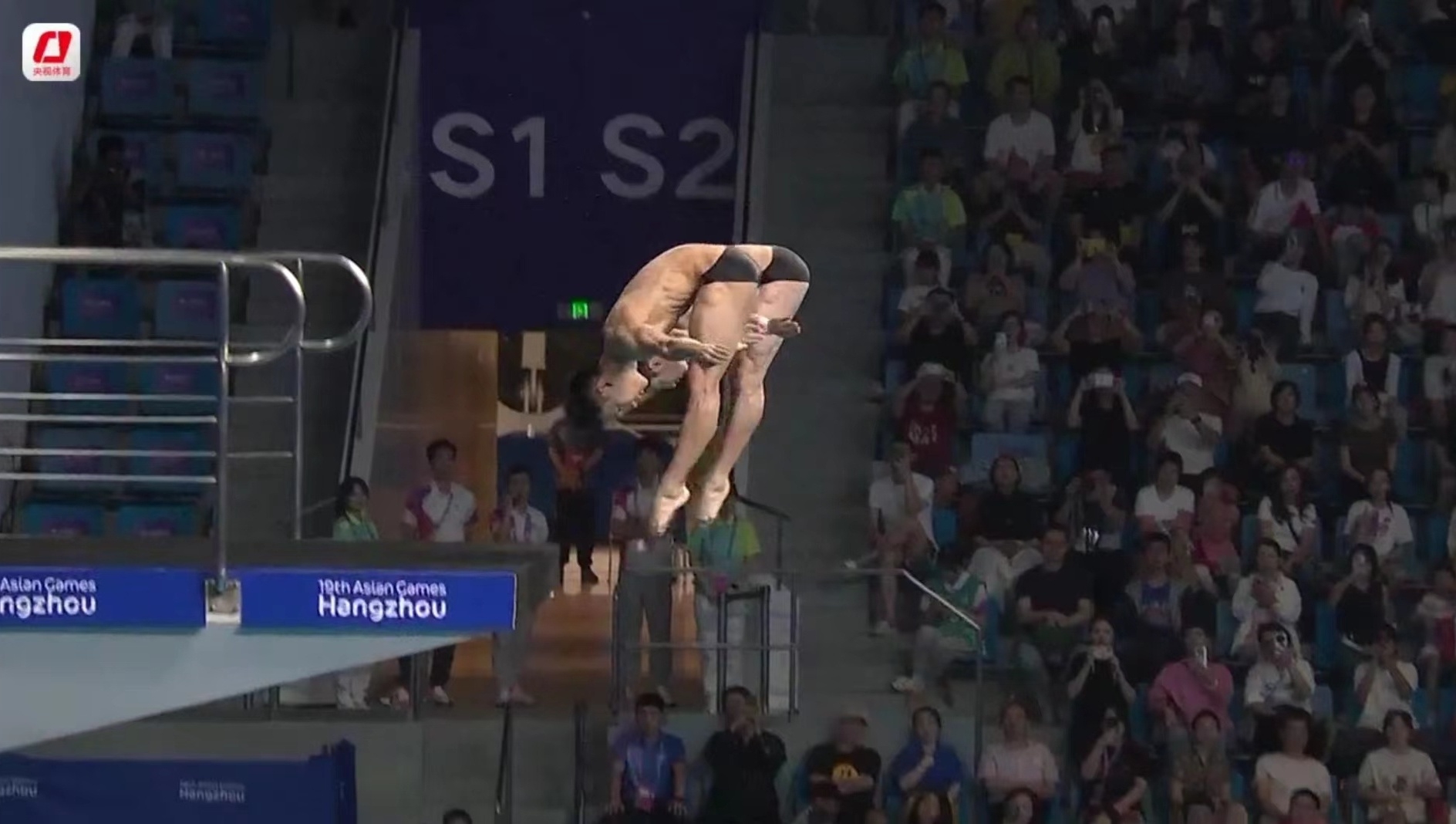 10月1日,杭州第19届亚运会跳水男子双人10米跳台比赛,中国组合杨昊/练俊杰夺得金牌。