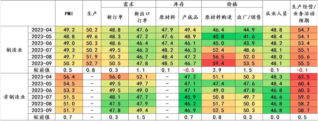 9月制造业PMI环比上升0.5pct至50.2%,时隔六个月重回扩张区间。非制造业PMI环比上升0.7pct至51.7%。制造业与非制造业景气度同步改善至荣枯线上方。