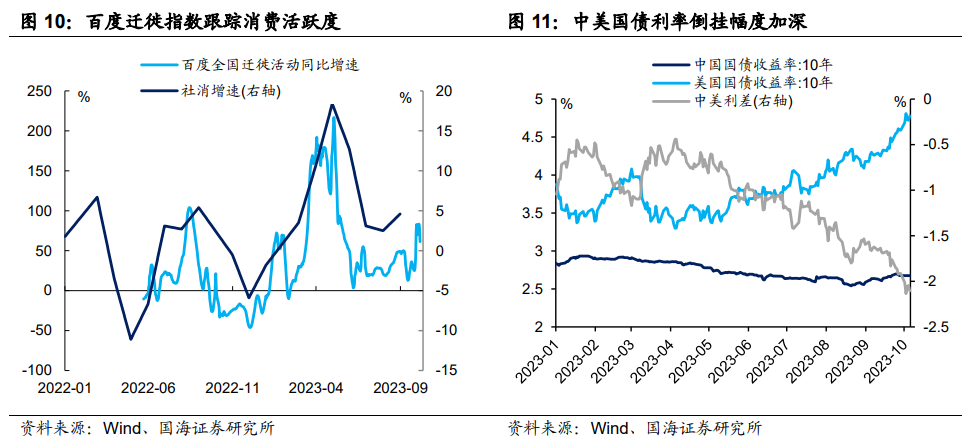 海外方面,受近期通胀数据反弹及就业数据偏强的影响,美债利率上行,中美利差倒挂幅度继续扩大(图11),人民币贬值压力仍然阶段性存在。