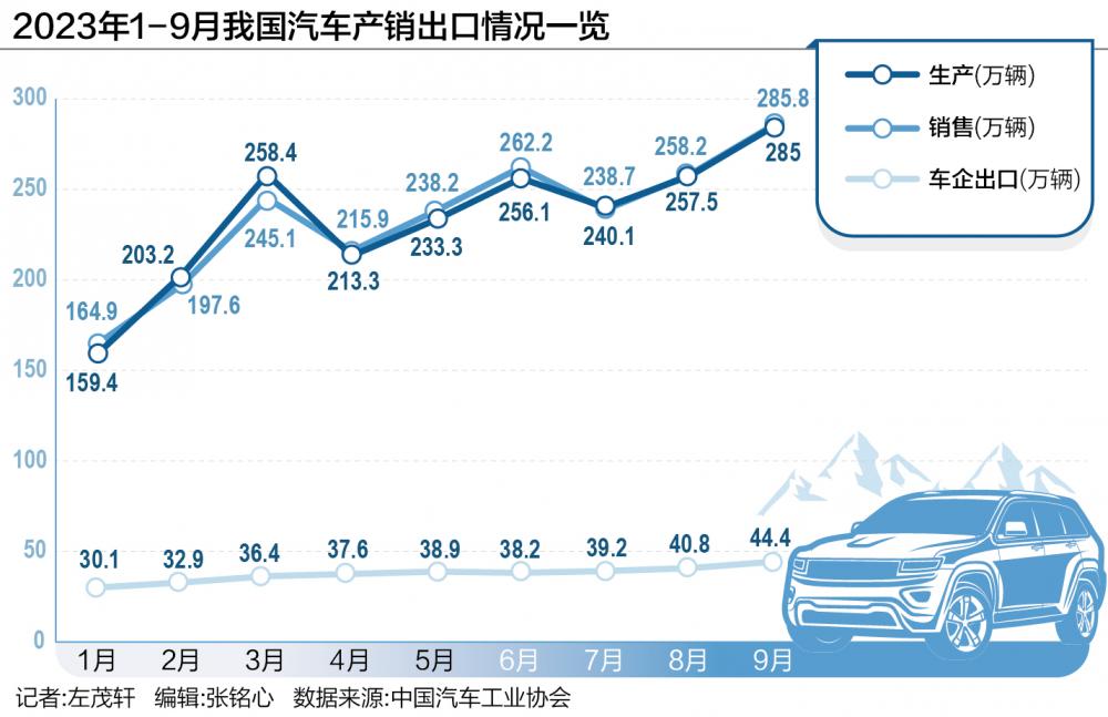 9月,汽车出口44.4万辆,同比增长47.7%。汽车出口已经连续两个月超过40万辆。