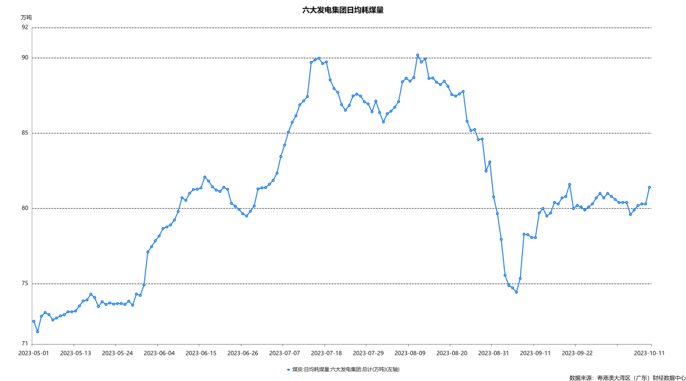 日均耗煤量微降,假期影响汽车生产。10月8日当周,六大发电集团日均耗煤量微降,较上周回落0.7至80.2万吨,库存可用天数上涨0.5天至17.4天;汽车方面,受双节来临、车厂陆续放假影响,10月8日当周,汽车轮胎全钢胎开工率及半钢胎开工率均延续回落,分别较上周下降9.0和2.6个百分点至49.9%和69.3%,但总体好于去年同期水平。