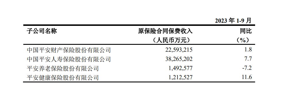 近日,中国平安发布前三季度保费收入报告,2023年1月1日至2023年9月30日期间,中国平安累计实现原保险保费收入6356.35亿元,同比增长5.2%。其中平安人寿前三季度实现原保费收入3826.52亿元,同比增长7.7%;平安健康前三季度实现原保费收入121.25亿元,同比增长11.6%。