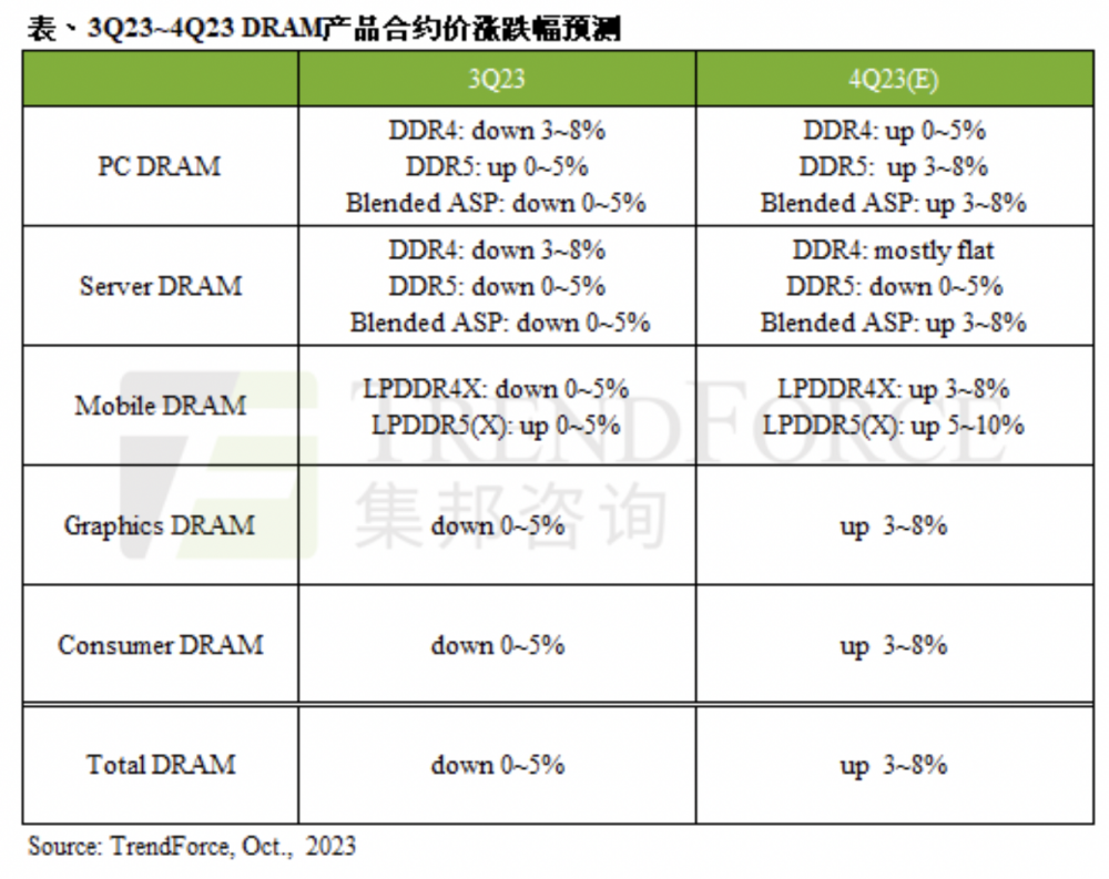 (预估DRAM细分市场的价格涨幅表现,图源:TrendForce集邦咨询)