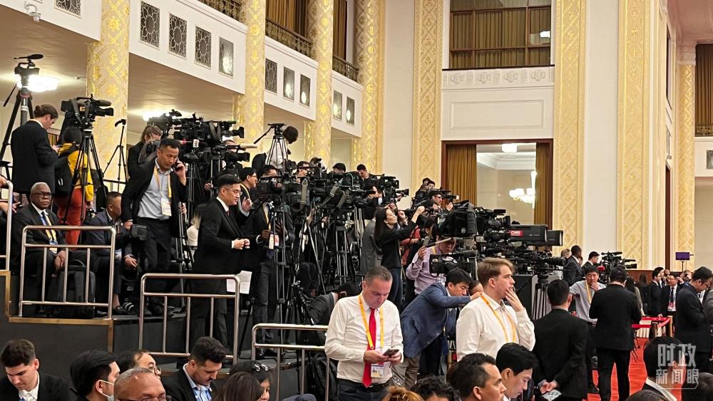 △现场报道开幕式的各国记者。(总台央视记者金雨秋拍摄)