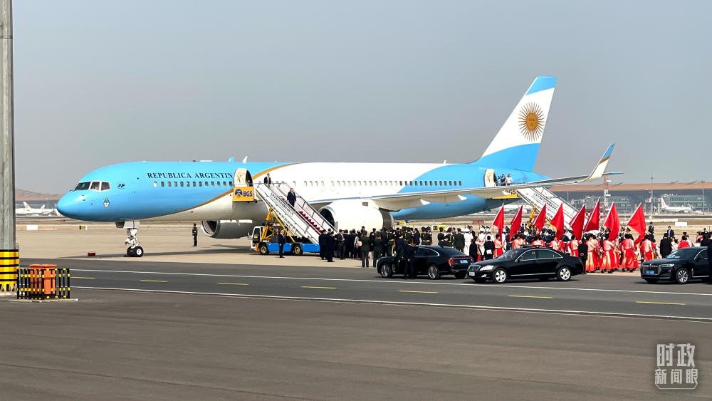 △10月17日中午,阿根廷总统费尔南德斯乘飞机抵达北京。(总台央视记者周锟拍摄)