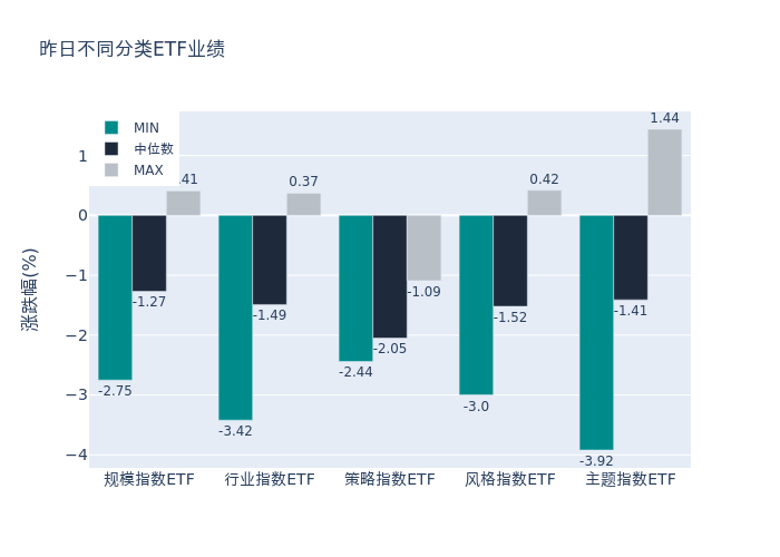 10月19日,股票型ETF收益率中位数为-1.44%。其中按照不同分类,规模指数中广发上证科创板成长ETF收益率最高,为0.41%;行业指数中南方中证500信息技术ETF收益率最高,为0.37%;策略指数中前海开源中证500等权ETF收益率最高,为-1.09%;风格指数中易方达上证科创板成长ETF收益率最高,为0.42%;主题指数中嘉实上证科创板芯片ETF收益率最高,为1.44%。