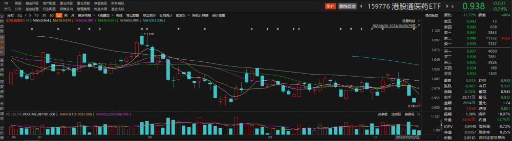 跟踪中证港股通医药卫生综合指数的港股通医药ETF(159776)早盘走低,但盘中交投持续活跃。截至发稿,该ETF下跌0.74%,换手率超10%。