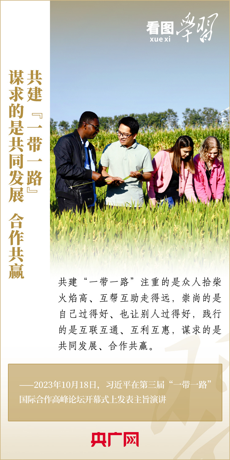 10月18日,习近平主席出席第三届“一带一路”国际合作高峰论坛开幕式并发表主旨演讲,深刻总结共建“一带一路”倡议提出十年来取得的发展成果和经验,就中国支持高质量共建“一带一路”提出具体行动,强调要迎接共建“一带一路”更高质量、更高水平的新发展,推动实现世界各国的现代化,建设一个开放包容、互联互通、共同发展的世界,共同推动构建人类命运共同体!一起来学习!