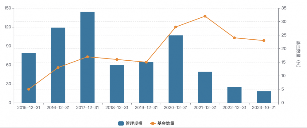 其公募基金管理规模由2017年底的143.97亿元,下降至目前的18.36亿元,缩水近九成,在155家基金管理人中排名跌至第143位。