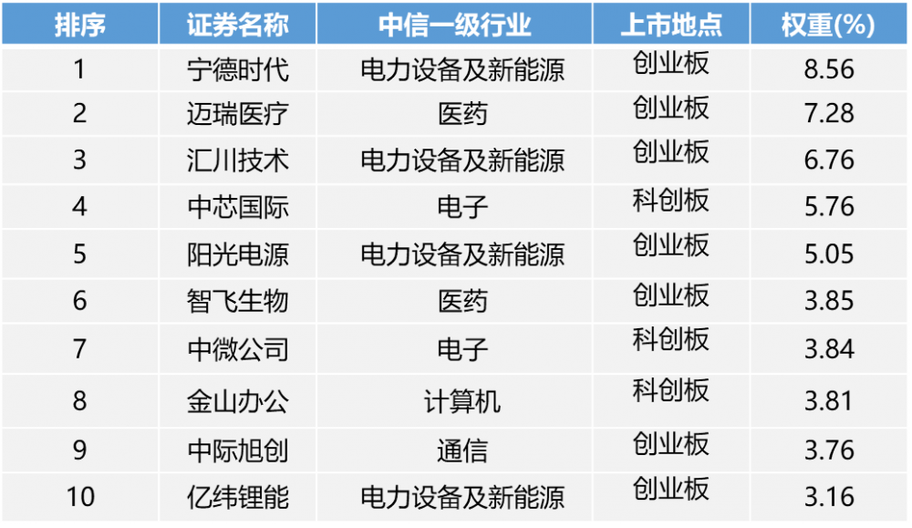 双创50指数前10大成分股
