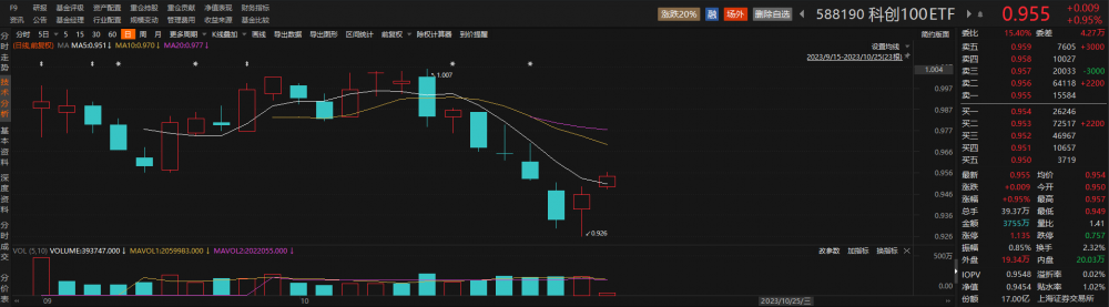 跟踪科创100指数的科创100ETF(588190)早盘走高,盘中现溢价交易。截至发稿,该ETF上涨0.95%,溢折率为0.02%。