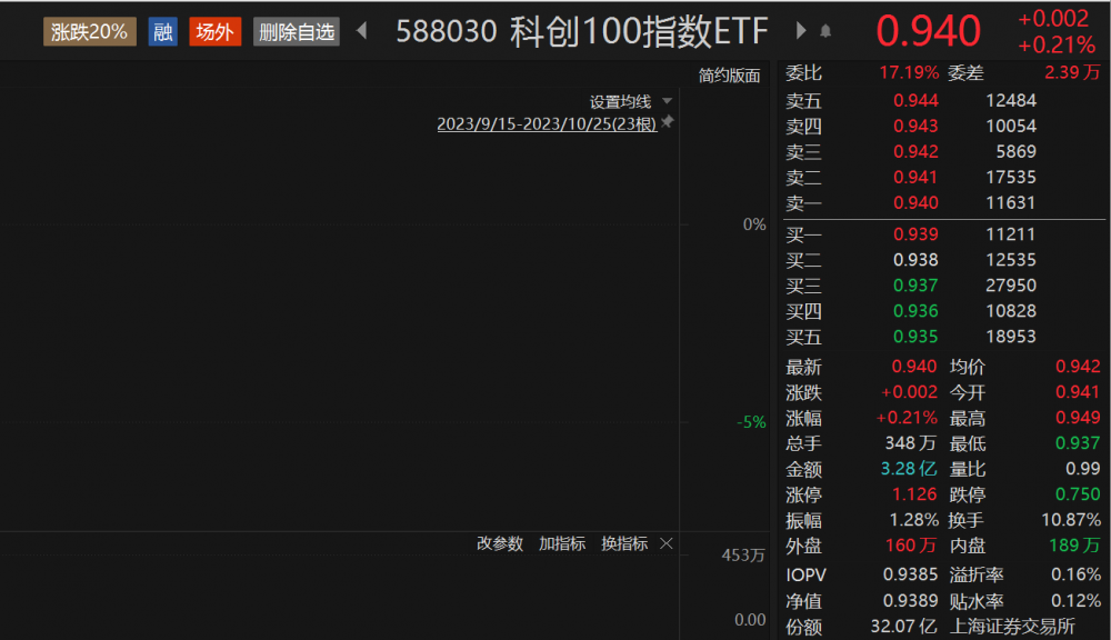 跟踪科创100(000698)规模最大的ETF——科创100指数ETF(588030)涨0.21%,实现“二连阳”,溢折率0.16%,成交额3.28亿元,换手率10.87%。近20个交易日资金净流入超8亿元,份额超32亿份,规模超30亿元,均位居同标的产品之首。此外,科创100指数ETF(588030)联接基金(A类019857,C类019858)于今日(10月26日)发行。