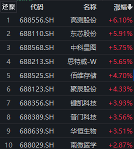 科创100指数(000698)盘中拉升翻红,成分股涨跌互现。截至发稿,上涨个股中,高测股份涨超6%,东芯股份、中科星图、思特威-W涨超5%,佰维存储、聚辰股份涨逾4%,键凯科技、普门科技、华恒生物、南微医学等跟涨。