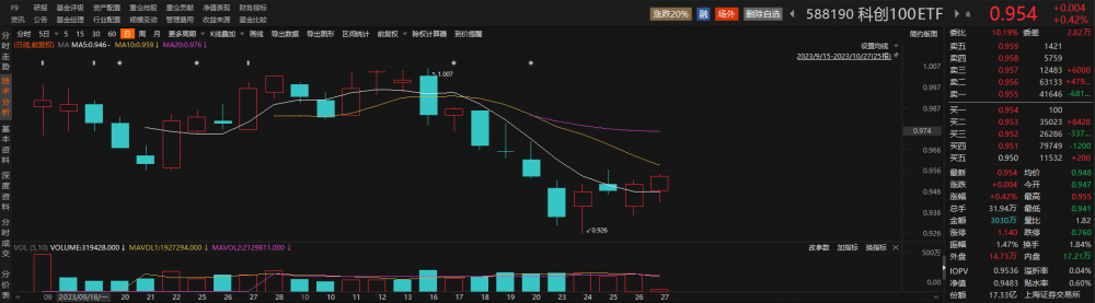 跟踪科创100指数的科创100ETF(588190)早盘低开高走,盘中再现溢价交易。截至发稿,该ETF上涨0.42%,溢折率为0.04%。