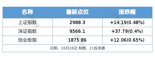 10月26日,大盘全天探底回升,创业板指领涨,盘中一度再创年内新低。截至收盘,沪指涨0.48%,深成指涨0.4%,创业板指涨0.65%。盘面上,卫星导航概念股午后持续爆发,亚光科技、天银机电、龙洲股份等涨停。汽车产业链表现活跃,华为汽车方向领涨,鹏翎股份、聚赛龙、江淮汽车、佛山照明等近10股涨停。AI概念股尾盘反弹,CPO方向领涨,光迅科技涨停。电力股震荡反弹,豫能控股涨停。下跌方面,光伏、锂矿等新能源赛道股一度陷入调整,通威股份、融捷股份跌超5%。总体上个股涨多跌少,两市超2700只个股上涨。沪深两市成交额8425亿,较上个交易日缩量312亿。板块方面,华为汽车、卫星导航、一体化压铸、液冷服务器等板块涨幅居前,煤炭、房地产、BC电池、水泥等板块跌幅居前。
