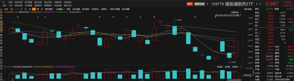 跟踪中证港股通医药卫生综合指数的港股通医药ETF(159776)盘中震荡走高,交投持续活跃。截至发稿,该ETF上涨3.87%,换手率超19%。
