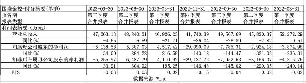 10月25日晚间,国盛金控发布了2023年第三季度报告。