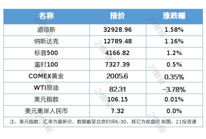 1、美国三大股指全线收涨,均涨超1%。大型科技股多数上涨,特斯拉跌4.79%,创10月19日以来最大单日跌幅。中概股多数上涨,纳斯达克中国金龙指数涨0.83%。