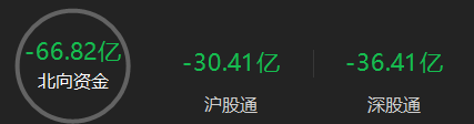 北向资金半日净卖出66.82亿元,其中沪股通净卖出30.41亿元,深股通净卖出36.41亿元。