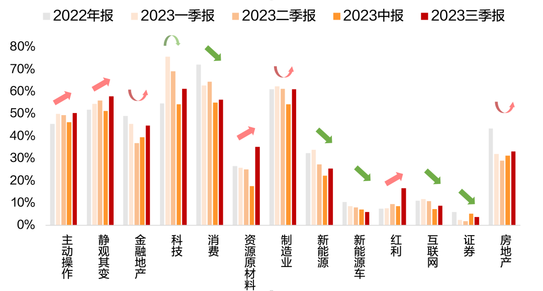 上周,基金三季报披露完毕。基金经理小作文中,谈及科技、金融地产、资源品、红利、制造业、地产的频率有所增加,而消费、新能源、互联网、证券的则在下降。