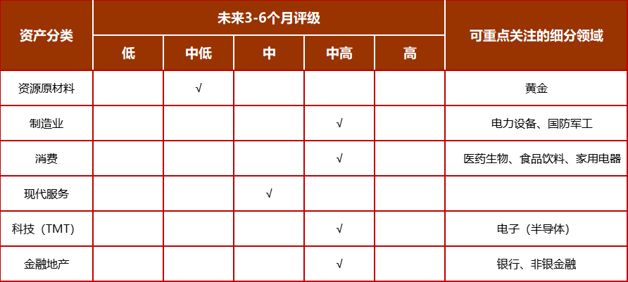 持续聚焦估值低位、景气向好的金融、消费、成长三大方向。重点关注银行、非银金融、食品饮料、医药、家电、国防军工、电力设备、半导体等细分领域。