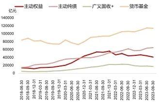 从基金规模来看,三季度纯债与货币基金规模继续增加,权益与固收+产品则继续缩水。