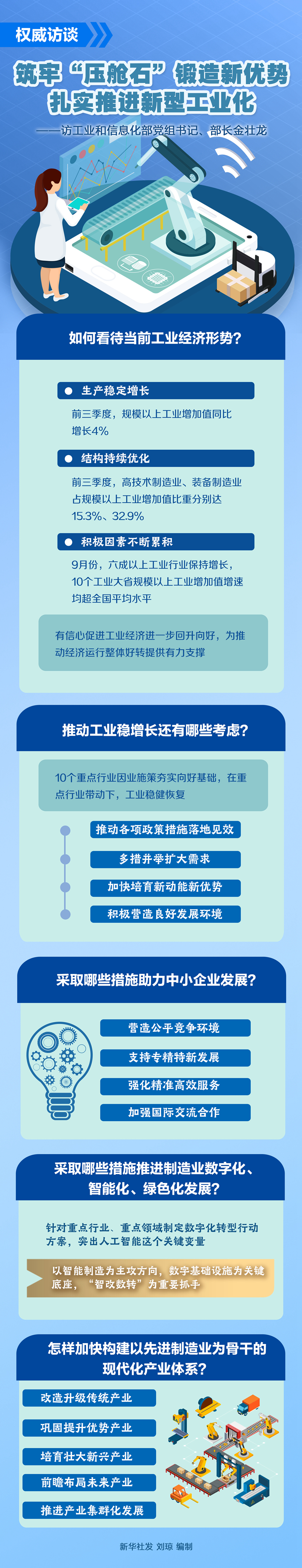 工业是国民经济的主体和增长引擎,四季度经济运行对实现全年目标任务至关重要。如何巩固恢复向好态势?怎样培育持久竞争力?工业和信息化部党组书记、部长金壮龙接受了新华社记者采访。
