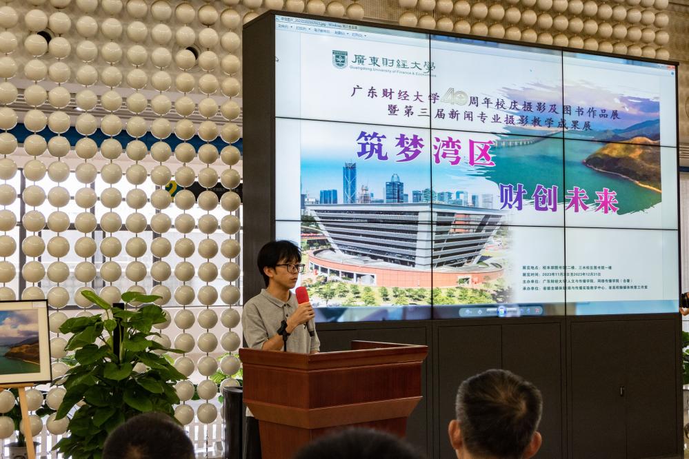 11月3日下午,由广东财经大学人文与传播学院、网络传播学院(合署)主办的《筑梦湾区,财创未来——广东财经大学40周年校庆摄影及图书作品展暨第三届新闻专业摄影教学成果展》于校本部图书馆顺利开幕。展览共展出摄影作品百余幅,书籍十余本,涵盖了2016级至2021级人文学子优秀作品,以专业的方式祝贺广财40周年校庆。