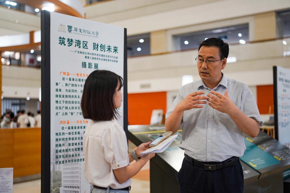 据了解,本次摄影图书展一共分为“广财篇”“湾区篇”“图书篇”三个篇章,从不同拍摄对象与不同媒介形态分别展示了粤港澳大湾区在近年来的城市发展与人文风情,记录下广东财经大学40年来的历史变迁与建筑风貌,讲述了广财学子与学校间的青春故事与温情瞬间,借摄影镜头“叙事”和图书文字“语言”为大家带来一场心灵盛宴。