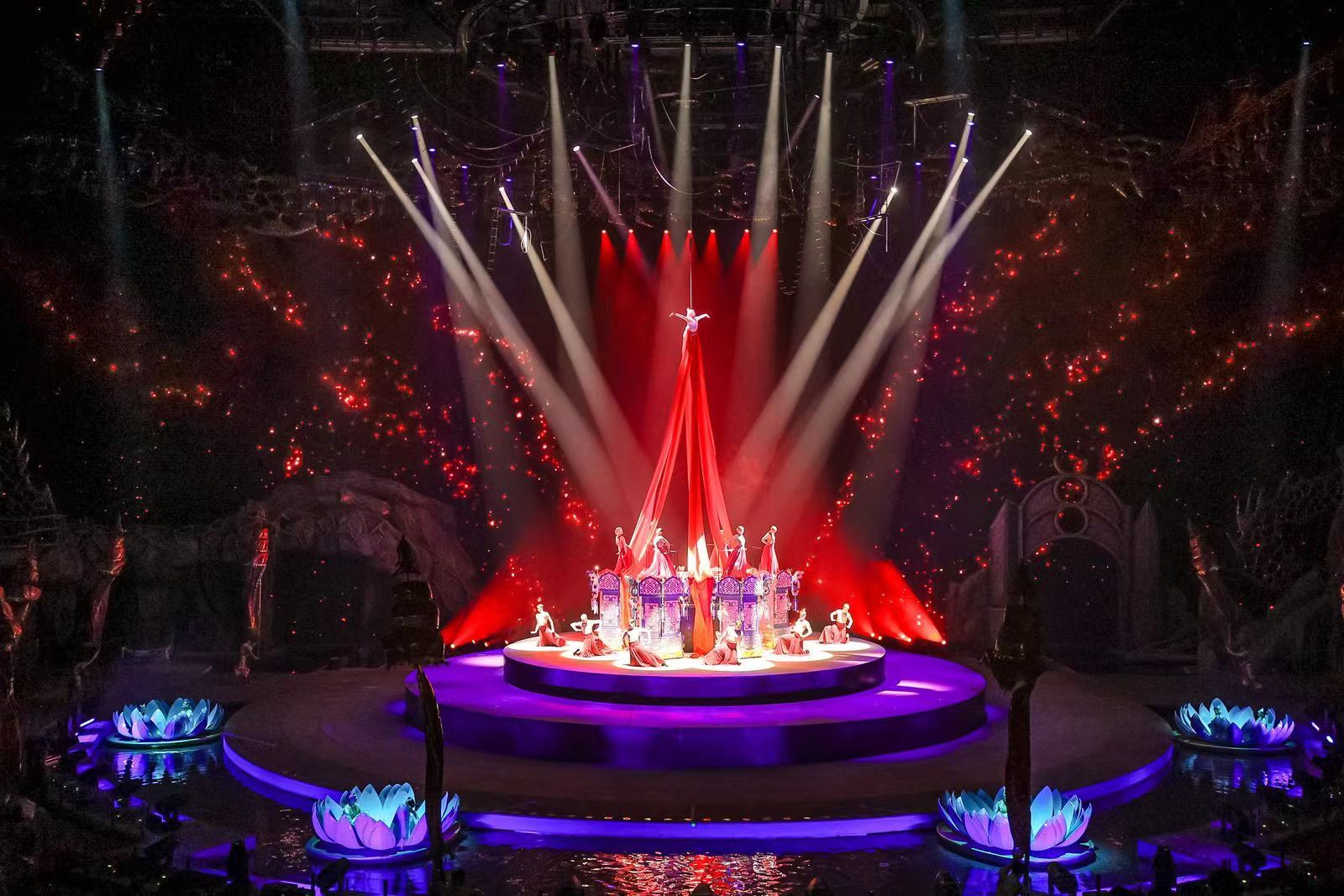 中国国际马戏节旨在打造马戏界的国际盛事,树立中国马戏文化国际品牌,推动举办地文化旅游产业的繁荣发展。基于这一理念,中国国际马戏节开幕式不但在内容编排、表达形式上与时俱进,融入当代潮流元素,还在场馆布置、舞台效果上不断迭代,用前沿技术赋能马戏文化的创新表达,构筑起世界一流的马戏多元文化交流互动的展现平台。在刚刚升级改造完成的珠海横琴长隆剧院,场馆内布置有270°全景式环形舞台、3大环绕水道以及超过250米的360°高空吊挂环形轨道,多种水陆空效果随着舞蹈、杂技表演灵活变换,令现场观众沉浸式地领略来自不同国家和地区的艺术风情与理念。