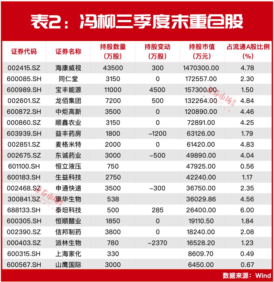身为私募界公开管理市值最高的基金经理,冯柳三季度期间新进重仓了5家公司,增持了4家公司 (见表2)。