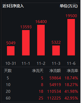 数据显示,截至11月6日,科创100指数ETF(588030)近10个交易日较低位反弹达10.7%,“吸金”近5.5亿元。拉长维度来看,近20个交易日获超11亿元资金布局。