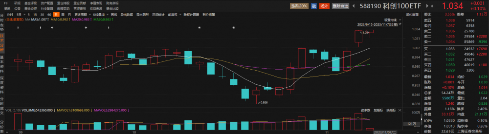 跟踪科创100指数的科创100ETF(588190)拉升翻红,盘中再现溢价交易。截至发稿,该ETF上涨0.10%,溢折率为0.10%,换手率达2.40%。