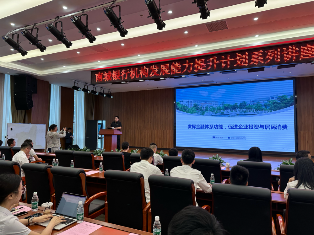 为积极响应全市经济稳增长工作号召,提升东莞市南城街道银行业务团队核心战斗力和竞争力,发挥银行机构在促消费、稳投资上的血液和“活水”作用,对南城经济稳增长提供支持,11月8日,南城街道举行南城银行机构发展能力提升计划系列讲座。第一期讲座以“发挥金融体系功能,促进企业投资与居民消费”为主题。
