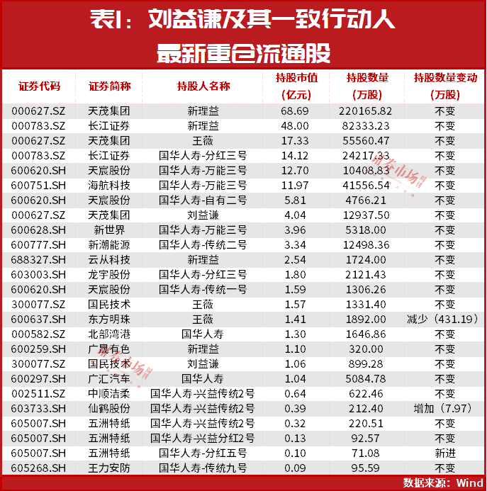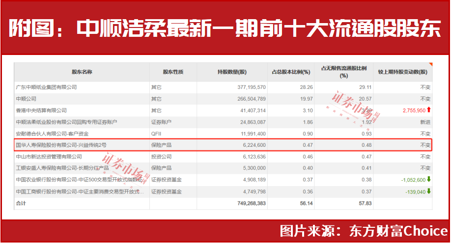 11月8日,中顺洁柔公告显示,公司董事会于11月2日审议通过了回购股份的议案,其截至11月2日的最新一期前十名无限售条件股东名称及持股情况同步公布,相比今年三季度末,其中国华人寿保险股份有限公司-兴益传统2号(以下简称“国华人寿-兴益传统2号”)维持持股不变(见附图),而国华人寿的实际控制人即为刘益谦。