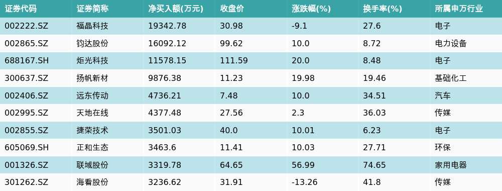 11月9日龙虎榜营业部净买入额前10详情见下表: