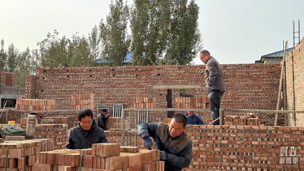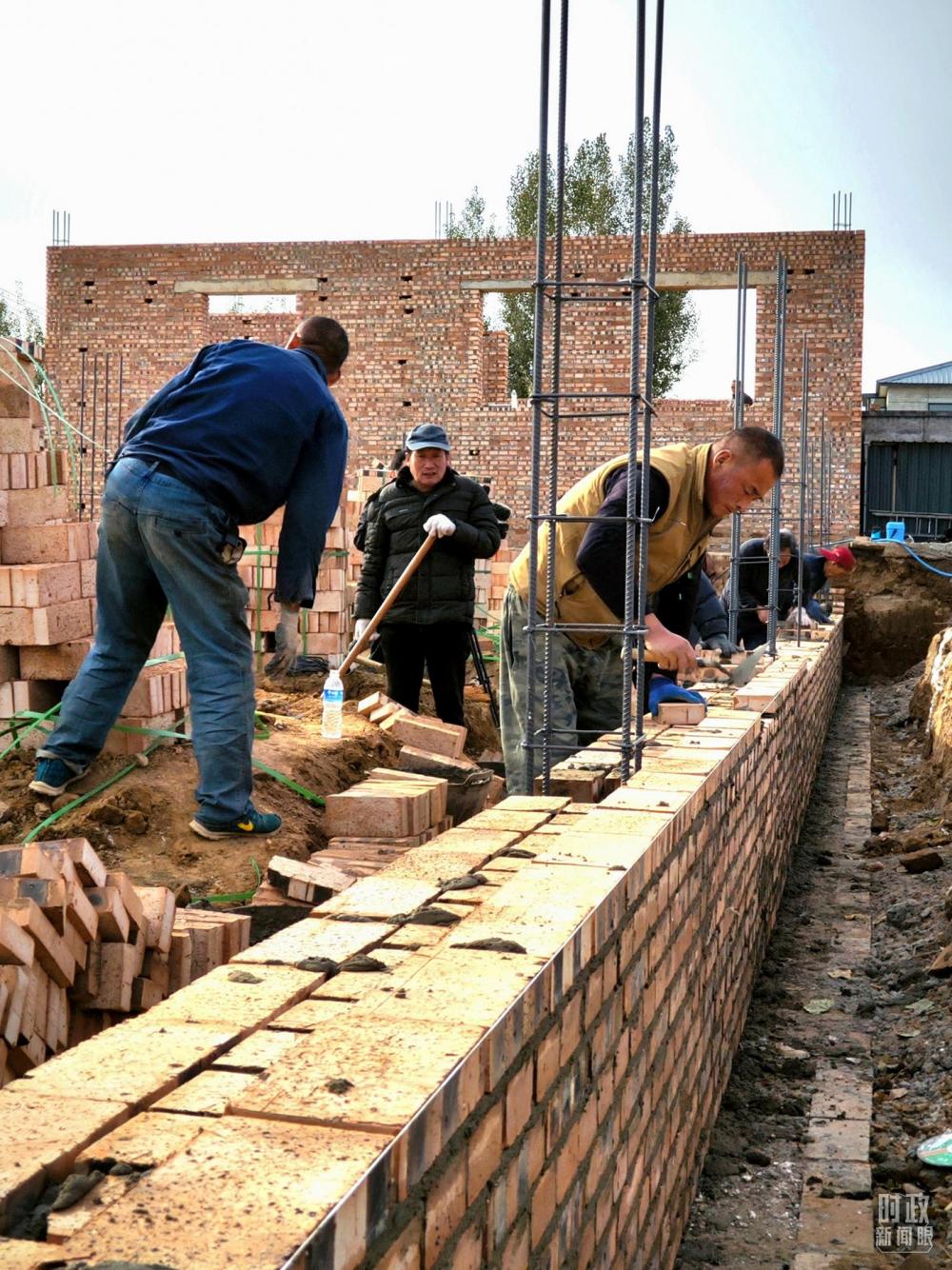 △ 刁窝镇万全庄村,施工队在建设新房。(总台央视记者郁振一拍摄)
