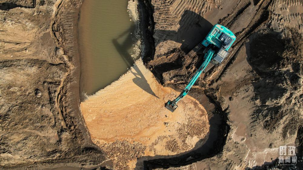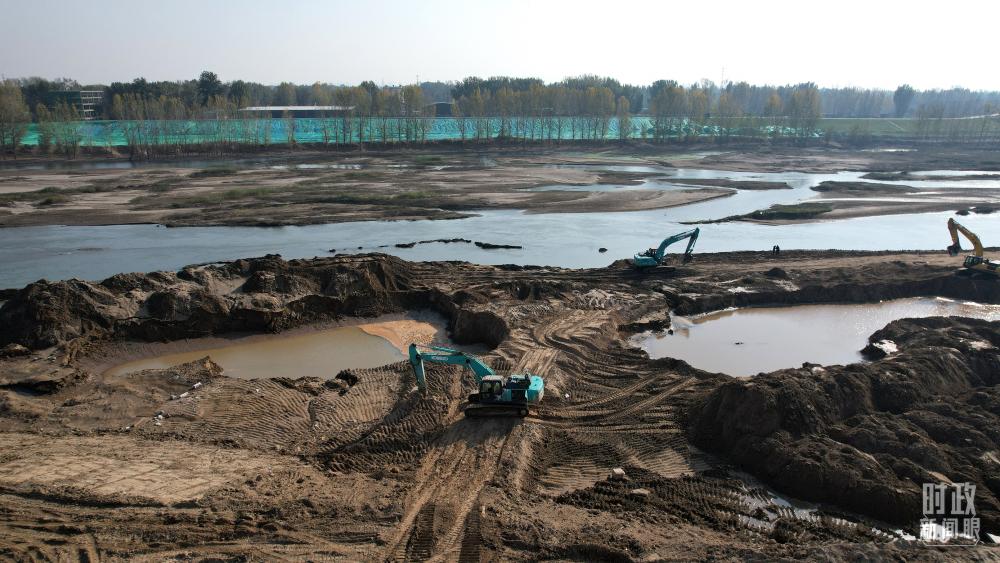 △ 白沟河治理工程(涿州段)施工现场。(总台国广记者李晋拍摄)